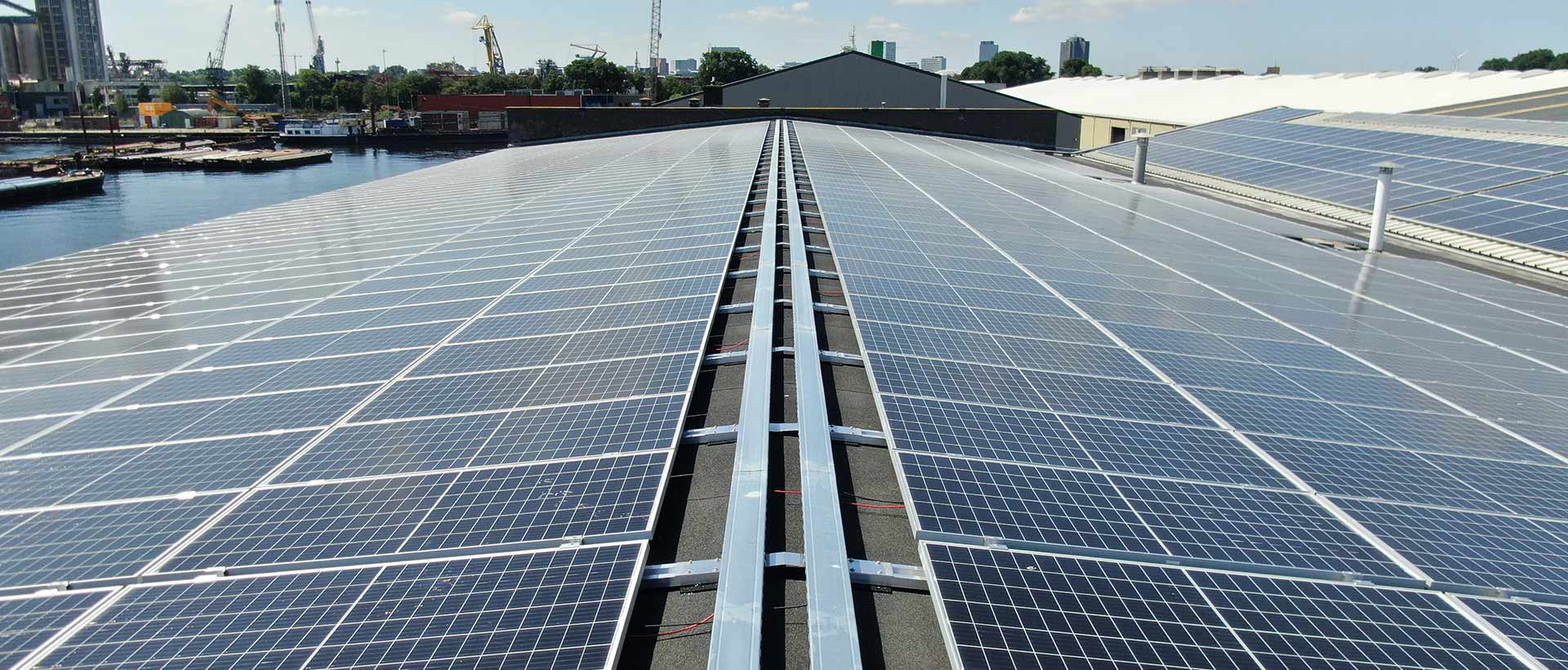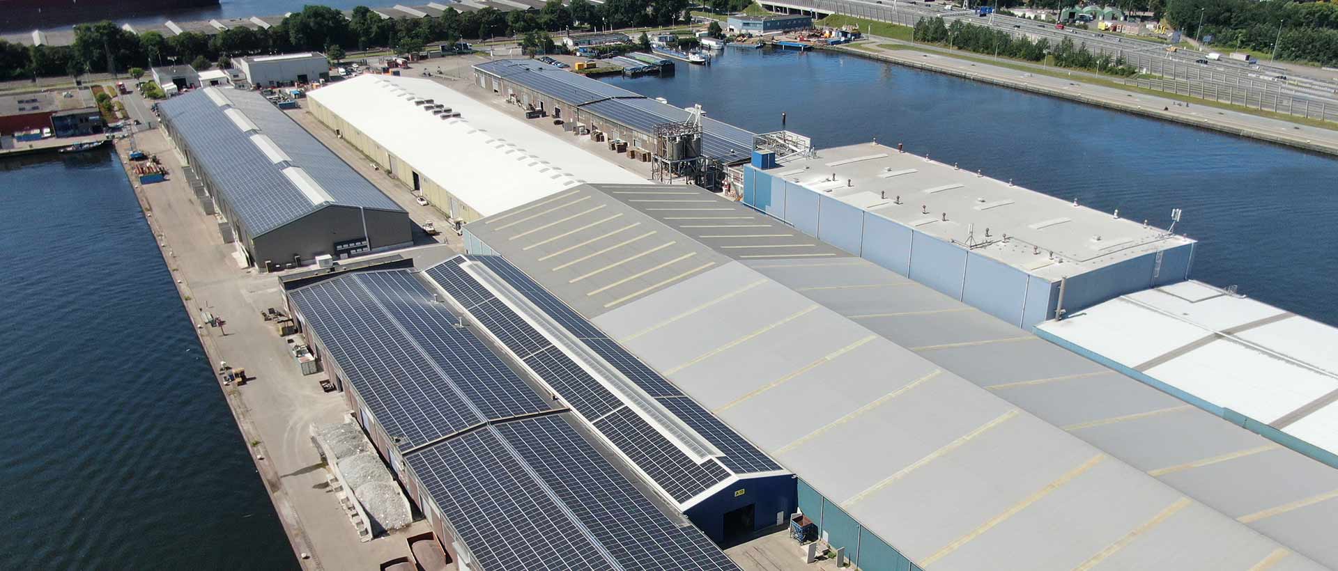 In accordance with European guidelines of improving sustainability in industrial enterprises, Eggerding has installed more than seven thousand solar panels across fourteen thousand square meters of Amsterdam warehouse space. The energy generated from this solar panel park will provide Egggerding with all of its electricity demand. We will even be able to offer forty percent of the energy generated to the market place, assisting in the greening of the Port of Amsterdam and enhancing quality of life in the surrounding area.